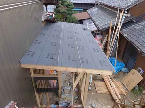 浴室、洗面室の増築をしました。 母屋と離れの双方から行き来できるよう、 どちらの入口にも鍵が付いてます。 明るく広い浴室ができました。 外壁は母屋の以前の物に合わせて、 違和感の無いようにしました