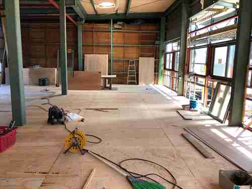 工場の宿舎になってる場所を改築、 新しくすることになりました スケルトンな状態から、下地を組み、 部屋、廊下、トイレ、シャワー室に炊事場と シンプルながら大規模な工事になりました。